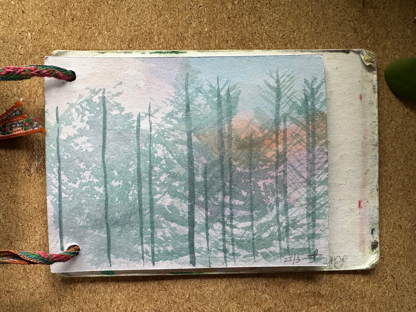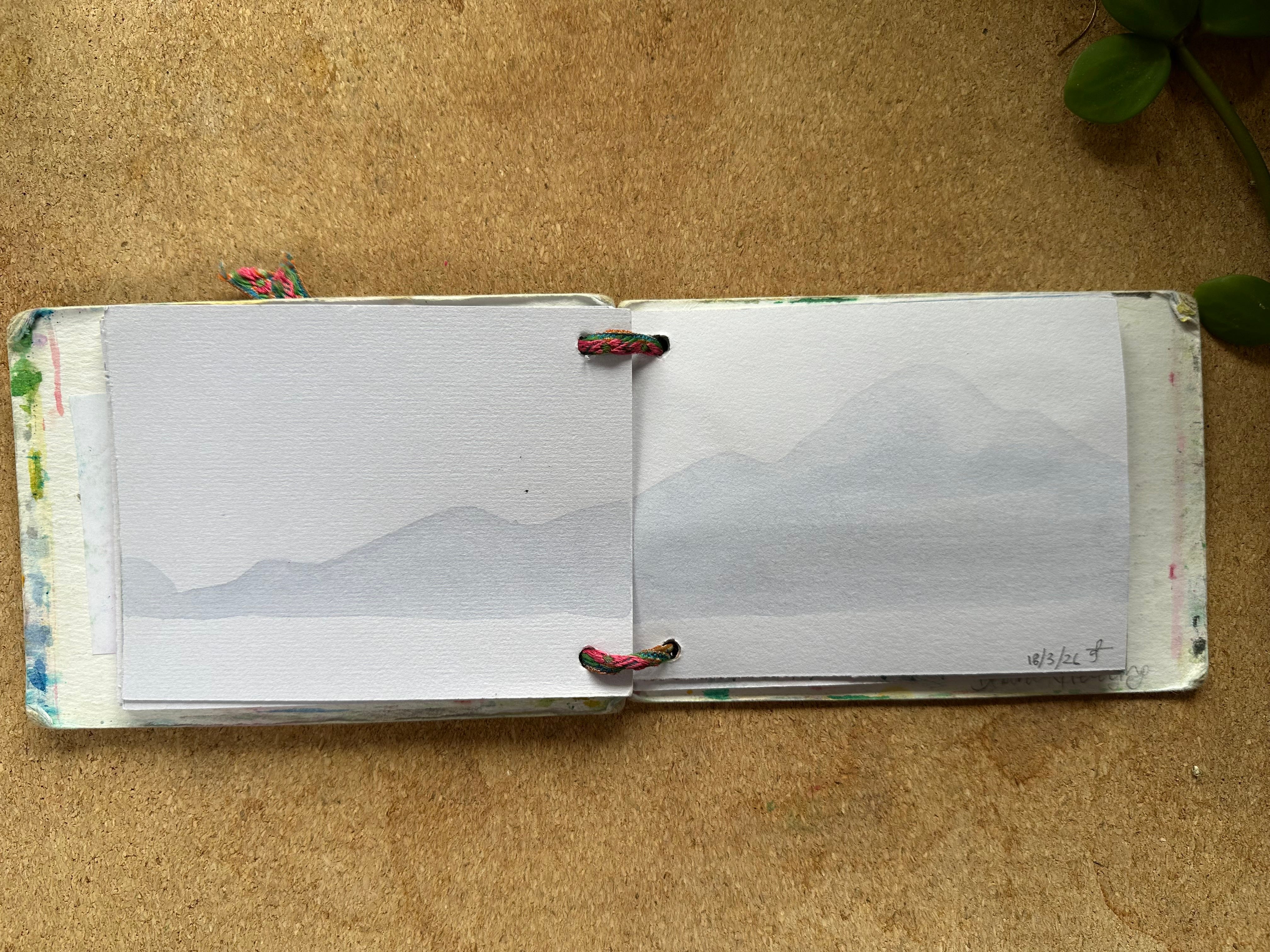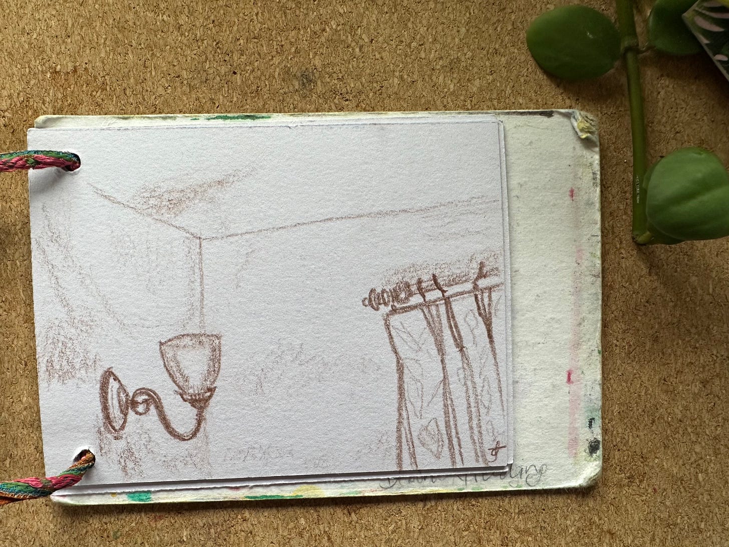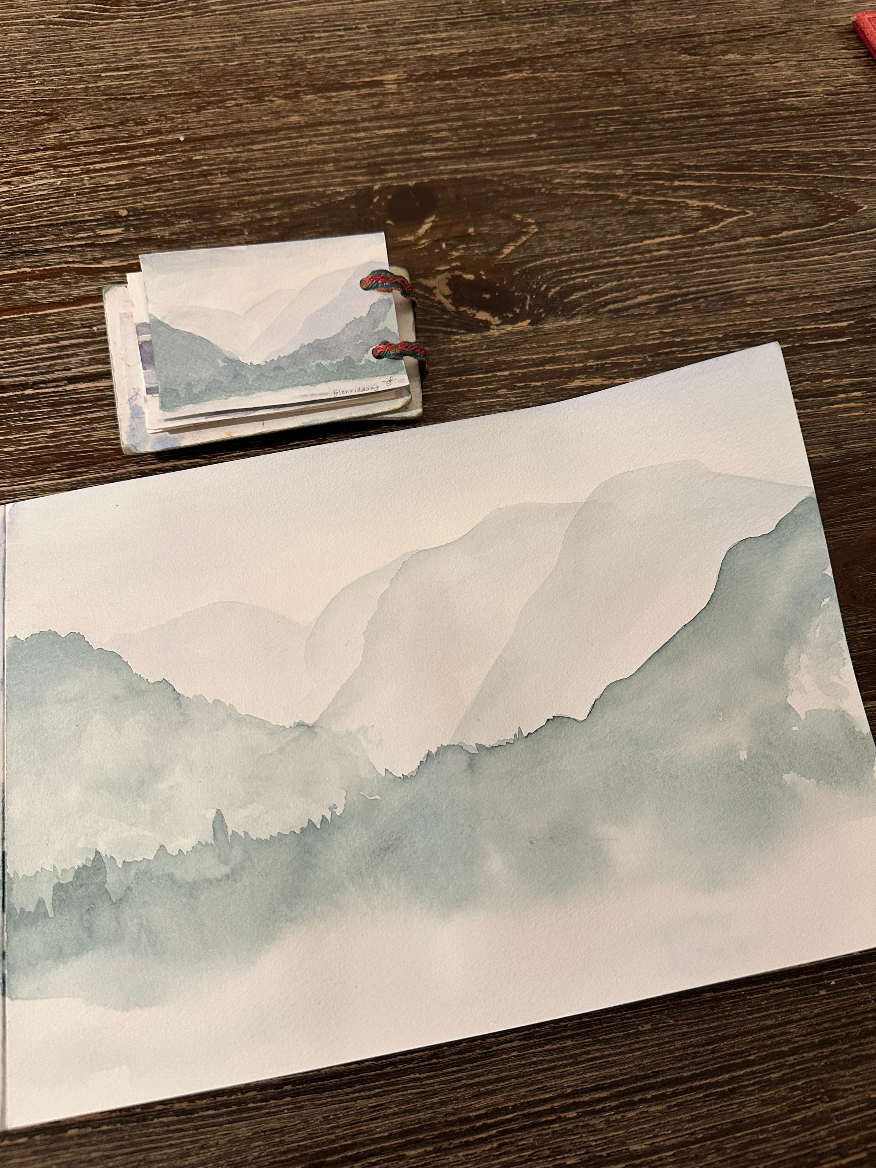 I will post my sketches below for you to see for yourself. I graduated to being a person who makes her own sketchbooks & notebooks a few years ago. These are the simplest ones ever: 2 punched holes, ribbon, paper and card. I’ve got one that is about A6 and one that is about A7 they fit in my pockets along with a pencil or two.